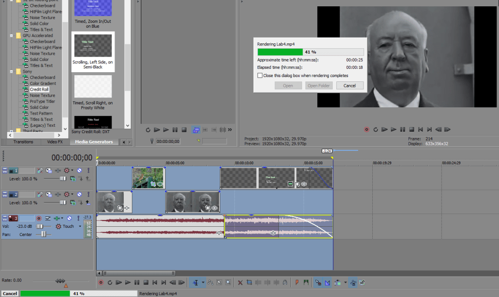 Conclusions: This lab helped me understand how well I can edit videos for future projects or assignments. It has been awhile since I’ve used editing software to edit a video for an assignment so this lab was good with helping me remember all the things I can do with video editing software.